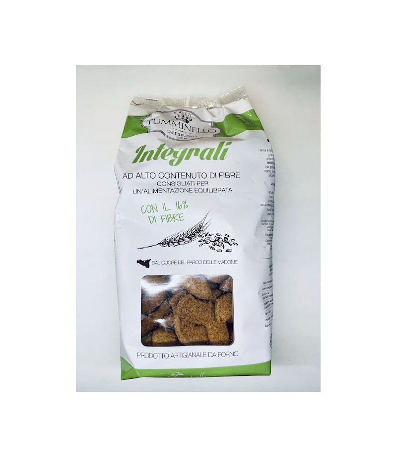 I biscotti Integrali Tumminello sono gli ideali per chi conduce uno stile di vita sano e segue un’alimentazione equilibrata. Dal sapore deciso, sono molto nutrienti. Con il 16% di fibre, senza grassi idrogenati e olio di palma, questi sfiziosi biscotti sono preparati con farine integrali e materie prime selezionate, controllate e di alta qualità.